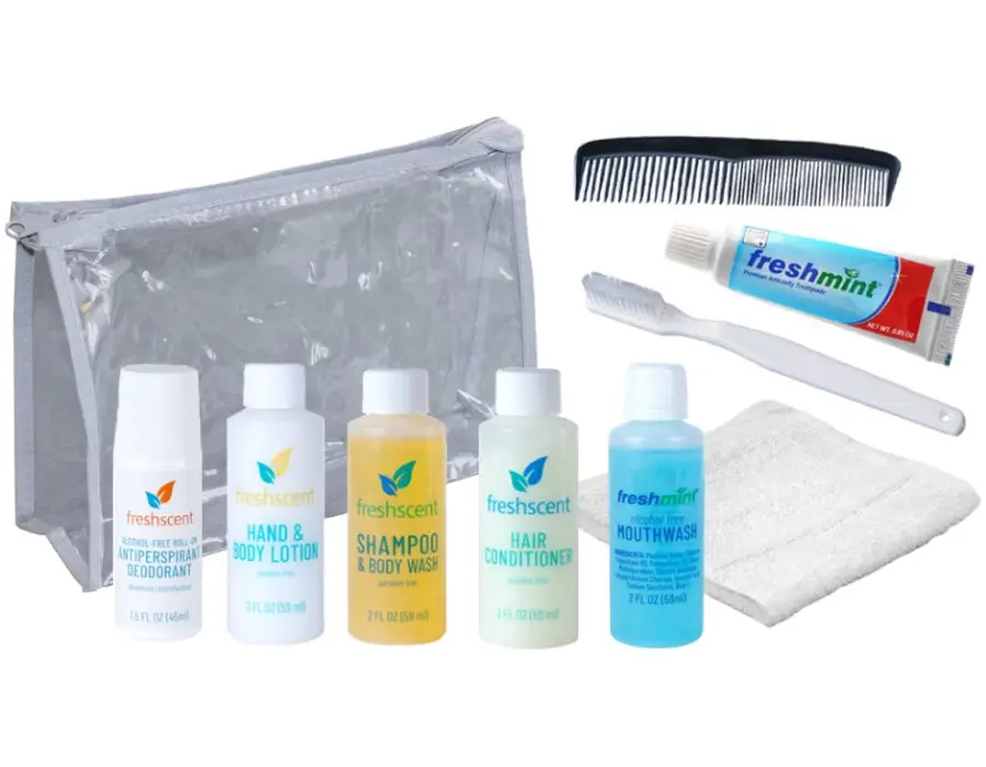 This toiletry kit is perfect for travel, hotels, Airbnb hosts, and bulk purchasing programs.