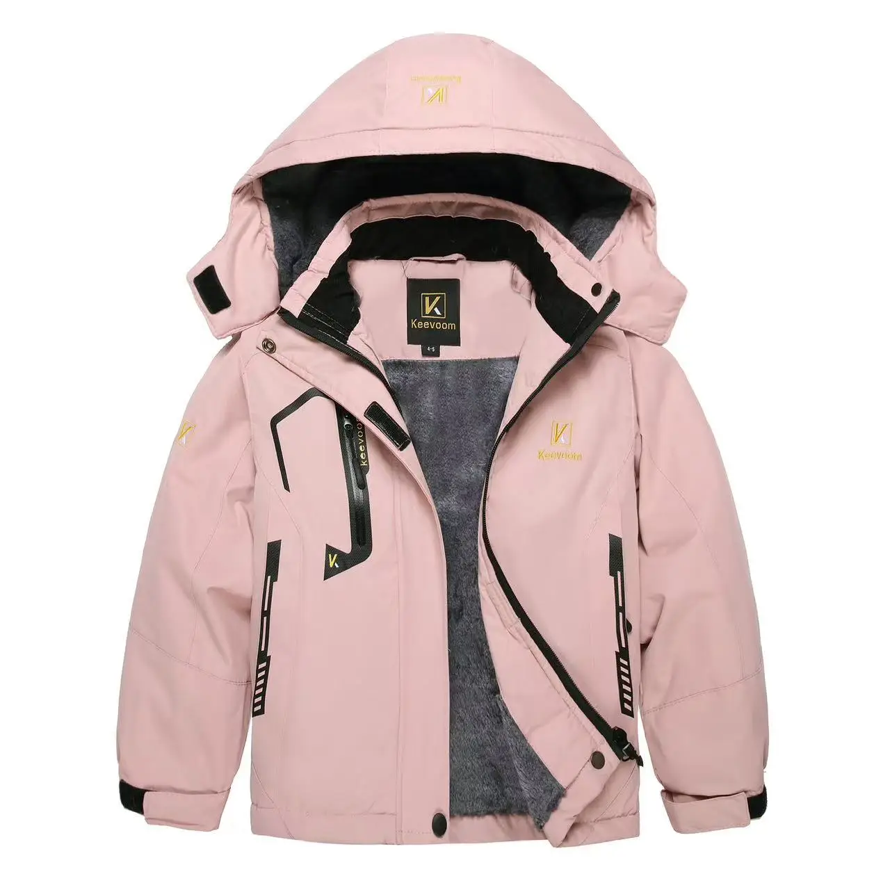 The waterproof shell helps keep moisture out. A soft fleece lining adds warmth without bulk. An attached hood with a zipper provides extra coverage when temperatures drop.
